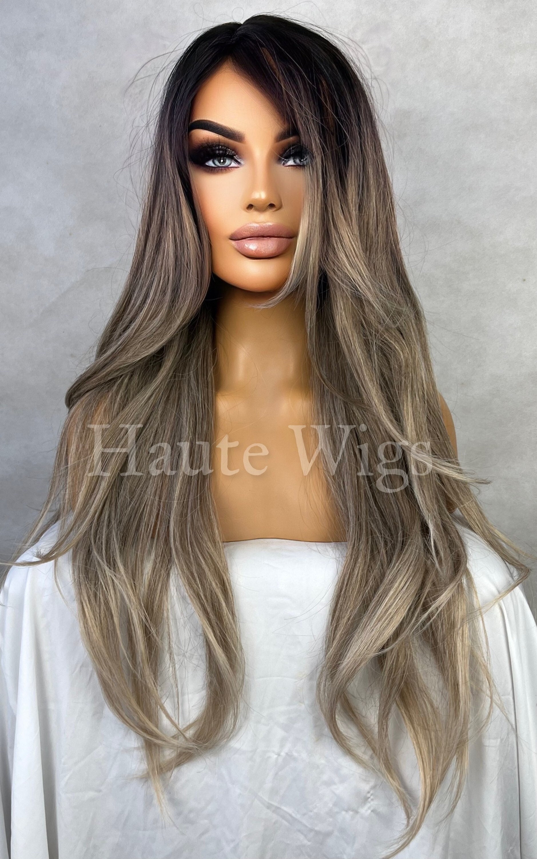 28 Zoll Ash Blonde Perucke Silber Ombre Schwarz 1b Root No Etsy De