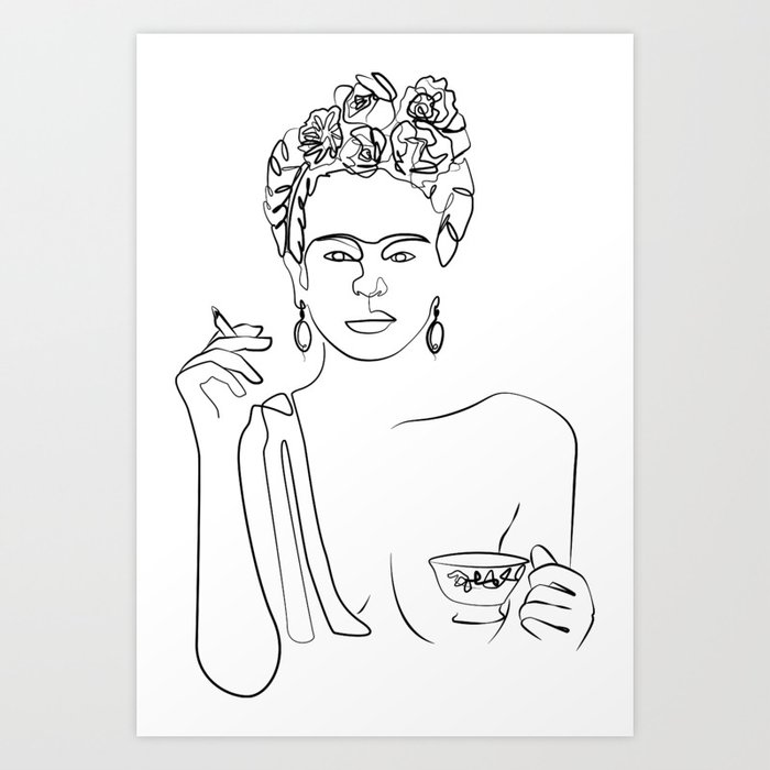 Frida Kahlo Line Art Frida Kahlo Print Frida Art Naked Smoking Lady Art Mid Century Wall Art Art Print By Graphicworldgifts Society6
